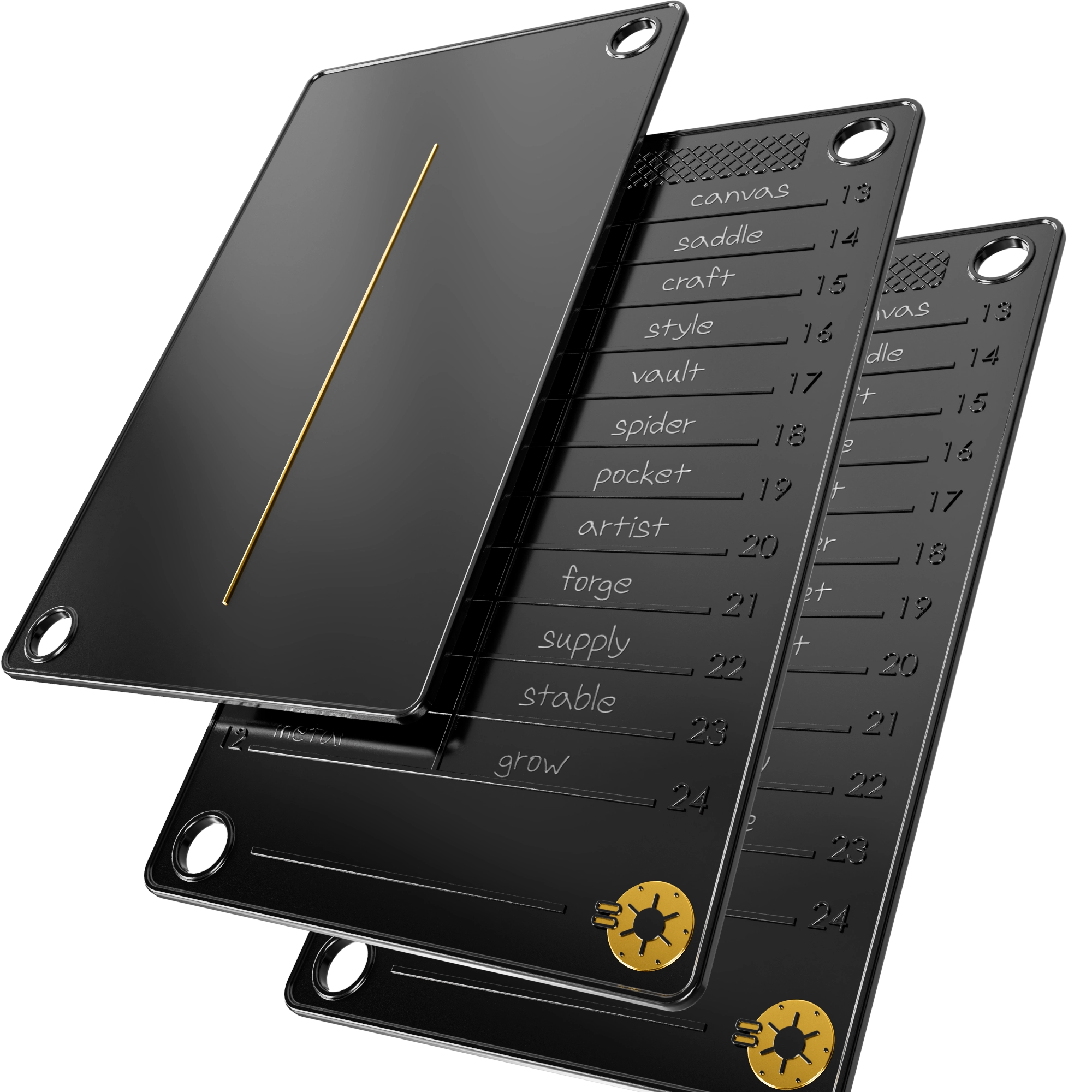 Each Premium set includes the etching tool, plus the hardware to bind your stack, including brass washers.