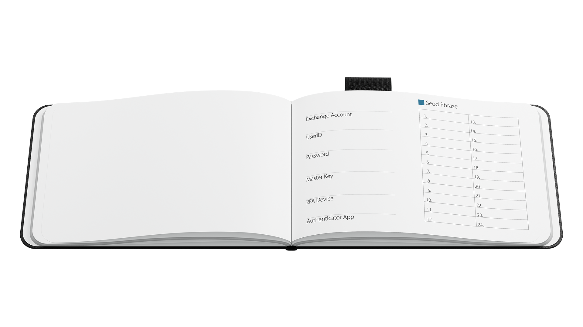 Lock down access and keep clean records. Use the tamper-evident edge seals to show if a screw-bound steel wallet was opened, apply the 14 color-coding stickers (2 each: red, blue, green, silver, orange, gold, pink) to label wallets by asset, and log everything in The IndeX stone-paper notebook - both water-resistant and tear-resistant for long-term, offline record-keeping. Designed for Black Seed Ink steel seed-phrase wallets; compatible with other screw-bound plate systems.